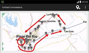 Para la realización de la prueba dinámica se realizó el seguimiento de una carga móvil en un trayecto real en la provincia de Pinar del Río de 27 km con una frecuencia de posicionamiento de 2 minutos realizándose el graficado de los puntos.