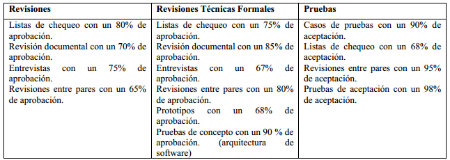 Basado en los resultados obtenidos como propuesta en el marco de trabajo se definen tres actividades de calidad:
