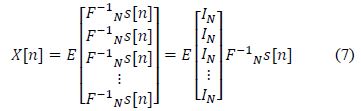 Dado el desenvolvimiento realizado en Farhang-Boroujeny y Moradi, 2015) los símbolos de datos de entrada Sk [n] y la iFFT de salida son relacionada con la siguiente ecuación: