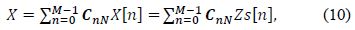 Alternativamente, X[n] puede ser calculado de forma matricial como en la ecuación (7):