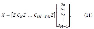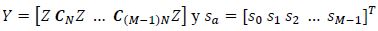 Donde la matriz CnN es tal que su multiplicación por un vector de tamaño N es equivalente a realizar la operación de desplazamiento circular de período nN en ese vector. Reescribiendo (10) en forma matricial y teniendo presente (8) como en ( Mayoral, Sampaio, y Pereira, 2017), se obtiene la ecuación (11):