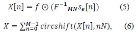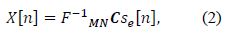 F-1 es la matriz de Transformada de Fourier Discreta Inversa (inverse Discrete Fourier Transform, iDFT) de dimensión MN x MN. La ecuación (2) puede ser reescrita con la siguiente ecuación: