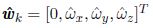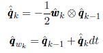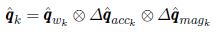 es un cuaternión puro que contiene la medición de los giróscopos;