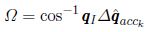 , obtenido del producto escalar entre ambos cuaterniones, según 10.