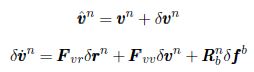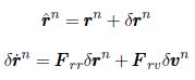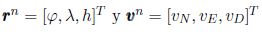 , como la medida del error entre las mediciones de posición y velocidad del INS y el GPS, se define la etapa de predicción del filtro con las ecuaciones 27a y 27b.
