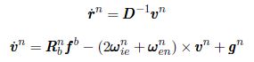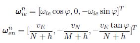 son respectivamente la velocidad de rotación de la Tierra en el marco de navegación, y la velocidad angular causada por la rotación del marco de navegación respecto a la Tierra, según las ecuaciones 19 y 20: