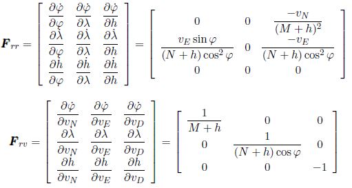 Ecuaciones del Filtro Extendido de Kalman para la fusión INS/GPS