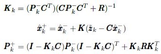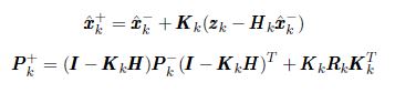Finalmente se actualiza el vector de estados, y la matriz de covarianza.