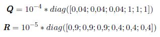 Para el ajuste del Filtro de Kalman Extendido, empíricamente se definieron las matrices Q y R, con los valores: