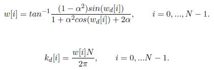 2. Calcular N puntos espectrales linealmente espaciados sobre el espacio de frecuencia deformada con unaseparación de enteros de 2πentre puntos adyacentes: