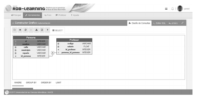ABSTRACT : The University of Informatics Sciences is a higher education center with the main goal of training professionals in the field of information and communication technologies. To achieve this goal, it incorporates the Learning and Knowledge Technologies into the teaching process, using the advantages of e-learning. As part of the University curriculum, there is the subject Database Systems I, in which the skills to design and implement relational databases are taught. Currently, students have difficulties in developing these skills, and one of the main causes is the lack of self-preparation through the use of educational technologies. The aim of this research is to develop an educational platform to support the teaching-learning process of the subject. To this end, an analysis of the theoretical foundations of the skills is carried out, and a study of the existing technologies used in their development is shown. In addition, an evaluation is made of how the tool contributes to student training and assists the teacher in evaluating and monitoring the individual development of learners.
