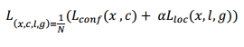 La red es entrenada con una suma ponderada de pérdida de localización:
