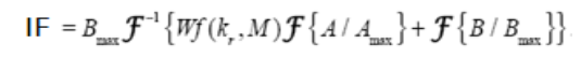 Donde A es la imagen PBI y Amax su valor de máxima intensidad y B es la imagen PRI y Bmax su valor de máxima intensidad. F y F-1 son la transformada y transformada inversa de Fourier.