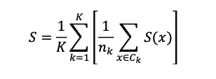 Finalmente, el índice de silueta global (8) está definido como sigue, siendo K el número de clústeres y nk la cantidad de objetos en cada clúster: