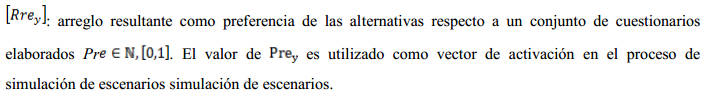 La obtención de las preferencias de las alternativas se hace a partir de la evaluación que se obtiene de las respuestas de los cuestionarios donde: