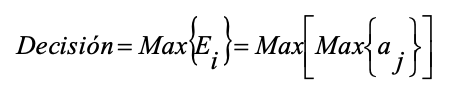 =1: representa un estado de optimismo. Esta función es recomendada para los casos donde las prácticas de laboratorios diseñadas no representan alto grado de complejidad y posee alto grado de tolerancia a fallo. El optimismo representa el estado de la naturaleza más favorable, es conocido como máximo y se formaliza tal como muestra la ecuación 4: