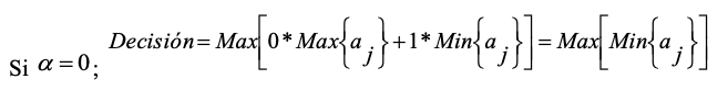 =1 responde a la naturaleza más favorable, este escenario es recomendado cuando se quiere que los individuos que intervienen en un proceso de toma de decisiones sean favorecidos. Para