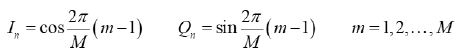 In M-ary PSK modulation, the modulating data signal shifts the phase of the bandpass waveform to one of M states, where each of them has a duration Ts. The In and Qn amplitude discrete levels to generate modulated signal waveform are obtained by