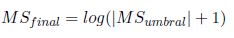 Donde, ω es el valor del mapa MScb (m, n), r es el umbral siendo la suma de la media más la desviación estándar en MScb.