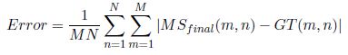 La métrica utilizada para validar el algoritmo propuesto es el error medio absoluto (a menor valor de error,mejor es el desempeño del algoritmo) que permite comparar la similitud entre el mapa de las regiones salientes obtenido y el ground truths (GT) de la base de datos. Los algoritmos utilizados para la comparación fueron: HS (Yan et al., 2013), PCA (Margolin et al., 2013), XL (Xie et al., 2013), GC (Cheng et al., 2013), Wco(Zhu et al., 2014), HC (Cheng et al., 2015), LPS(Li et al., 2015), BL(Tong et al., 2015), Linhua (Linhua et al., 2017).