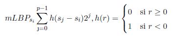 por la expresión (7). Al igual que el primer método se busca los rasgos menos frecuentes, pero solamente con los valores obtenidos del Módulo Patrón Binario Local (mLBP).