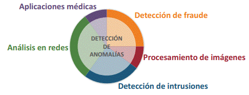La detección de anomalías es una técnica de Minería de Datos con un amplio espectro de aplicaciones enfocadas en la seguridad social, como, por ejemplo: el análisis de redes informáticas y sociales, análisis de transacciones bancarias, y análisis de datos sensoriales, entre otros (Chandola et al., 2009; Kumar, 2005; Aleskerov et al., 1997; Fujimaki et al., 2005; Spence et al., 2001). Esta técnica permite el reconocimiento de patrones que no se comportan de la manera esperada en los datos (Kesavaraj and Sukumaran, 2013; Chandola et al., 2009). En una red informática, patrones de comportamiento inusual podrían significar que una computadora pirateada está enviando datos confidenciales a un destino no autorizado (Kumar, 2005). Diferentes comportamientos en los datos de transacciones con tarjetas de crédito podrían indicar el robo de identidad o de la tarjeta de crédito (Aleskerov et al., 1997). Las lecturas de comportamientos inusuales de un sensor de nave espacial podrían significar un error en algún componente de la nave (Fujimaki et al., 2005). Incluso al trabajar con imágenes médicas, un cambio abrupto en la intensidad de los píxeles en lugares inesperados, puede indicar la presencia de tumores malignos (Spence et al., 2001). Todos estos patrones que no siguen el funcionamiento esperado son conocidos como anomalías y su detección permite la prevención de nuevos ataques, malos funcionamientos, así como la detección a tiempo de tumores. En la Figura 1 se muestran varios de los campos donde se realiza la detección de anomalías.