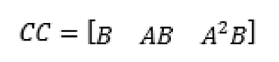 Es conocido que la ecuación de estado x =𝐴𝒙+𝐵𝑈 es controlable si la matriz de controlabilidad C, definida como: