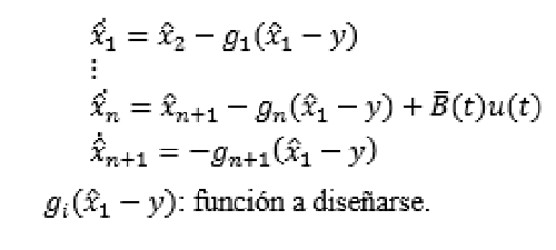 Siendo g1 ; g2 y g3 las ganancias del observador, las cuales se calculan de forma que el polinomio característico s3+ l1s2+ l2s + l3 sea Hurwitz. Por razones prácticas, todos los polos del ESO se localizan en w0, lo que resulta en: