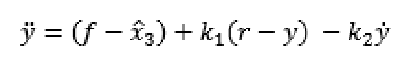 Donde r es la señal de referencia, k1 y k2 las ganancias del controlador seleccionadas de forma que el polinomio s2+ k2s + k1 sea Hurwitz. En forma similar al diseño del ESO, los polos del controlador se suelen localizar en wc lo que origina: