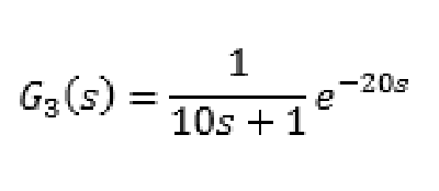 Ejemplo 2. Considere la siguiente la siguiente función de transferencia de una columna de destilación utilizada por (Alfaro, 2012), en la cual se utiliza el flujo de vapor para lograr el control del nivel del fondo, mediante un ADRC controle el sistema y muestre el comportamiento del mismo cuando los parámetros del proceso coinciden con los del predictor de Smith y una perturbación en la entrada, así como cuando el proceso tiene una diferencia de +20% y de -20%: