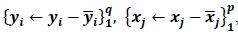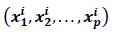 Dado un conjunto de entrenamiento con N ejemplos, p variables predictoras y q variables de salidas, cada instancia i se caracteriza como un vector de variables descriptivas xi