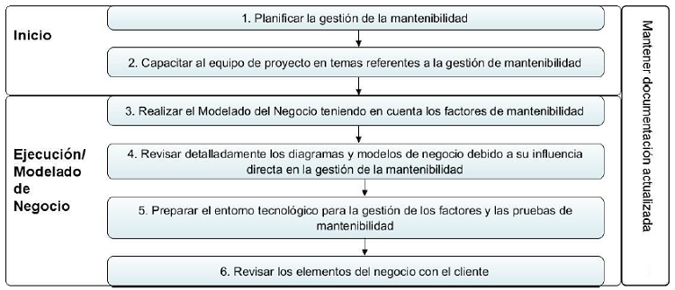 Los problemas constatados a partir de la revisión de la literatura, así como evidencias empíricas, llevaron a elaborar un proceso para la gestión de la mantenibilidad desde etapas tempranas en el ciclo de vida de desarrollo de software. Describiendo las actividades que se deben realizar en las disciplinas ingenieriles: Modelado de negocio, Requisitos, Análisis y diseño, Implementación y Pruebas. Estas actividades están asociadas a los factores que influyen en cada una de las sub-características de mantenibilidad planteadas por la Norma Cubana ISO/IEC 25010: 2016 (NC ISO/ IEC 25010, 2016).
