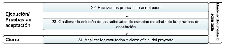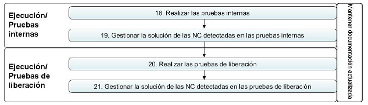 En las Figura 3 y Figura 4 se observan las actividades de las disciplinas: Pruebas internas, Pruebas de liberación y Pruebas de aceptación, así como la actividad de la fase de Cierre.