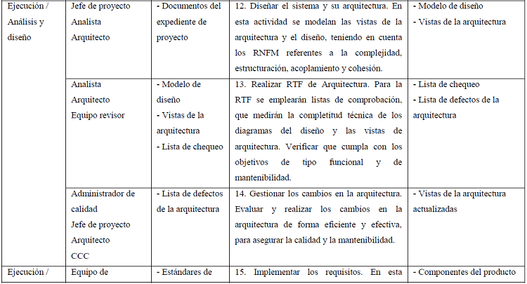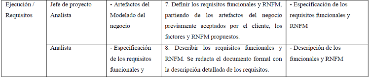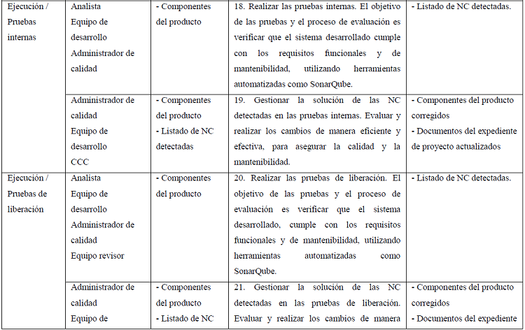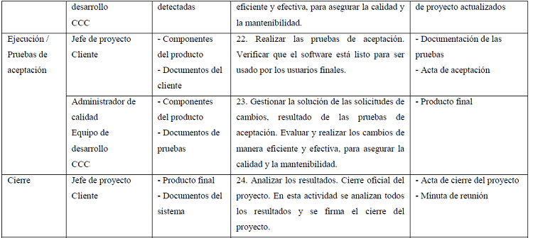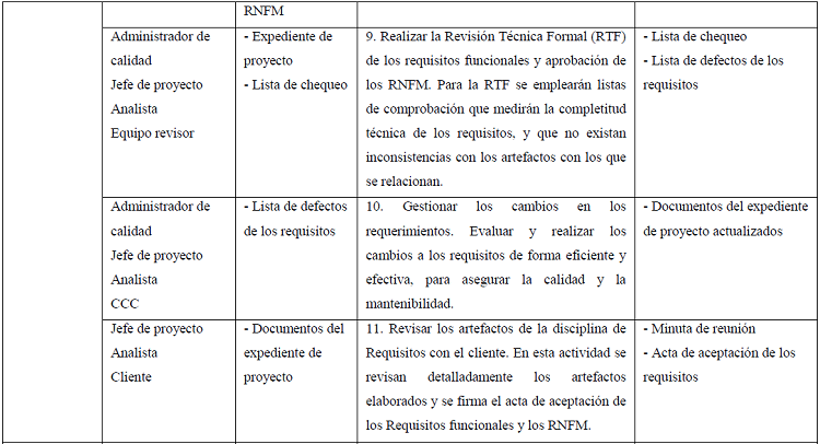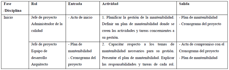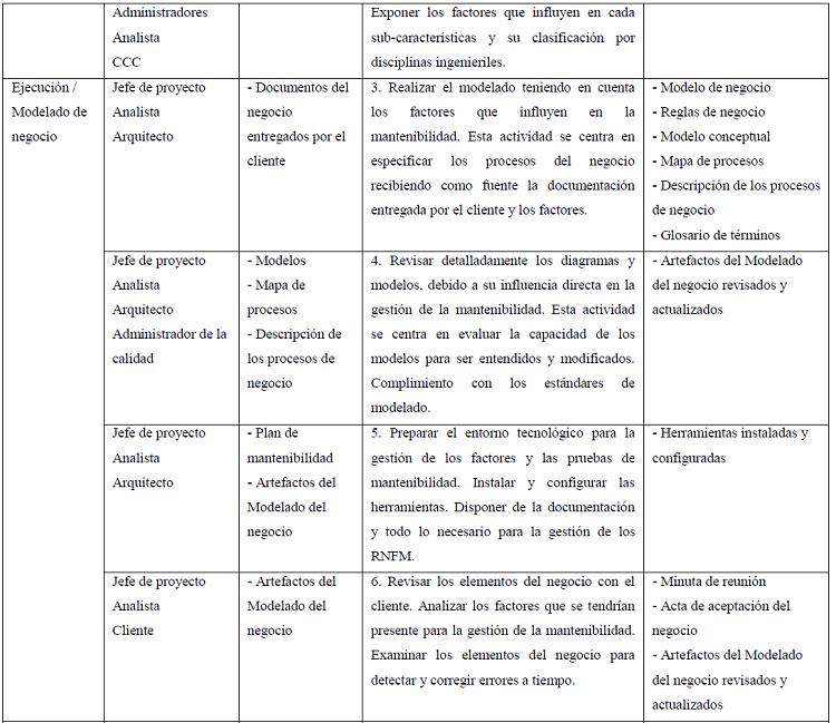 En la Tabla 2 se definen los roles, así como los artefactos de entrada y salida para las actividades presentadas anteriormente.