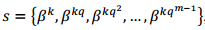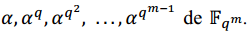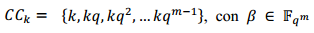 un elemento primitivo. Esto es debido a que los elementos que pertenecen a s constituyen las raíces de un polinomio primitivo de grado m sobre Fq. Así, cada polinomio primitivo
