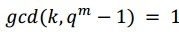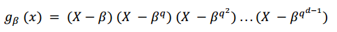Donde d*(x) es el polinomio mónico reverso del polinomio d(x) y mcd(.) es la función que calcula el máximo común divisor. Se puede observar que el grado m del polinomio de entrada g irreducible sobre Fq utilizado para definir el campo finito