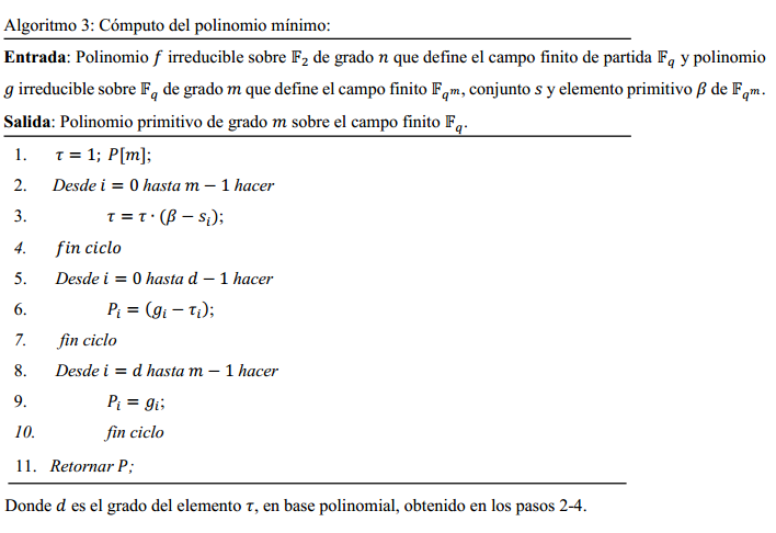 Luego de obtenido cada coseto q-ciclotómico, se realiza el cómputo del polinomio primitivo a partir de los elementos de