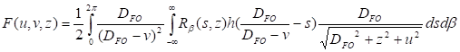 Para el desarrollo de este algoritmo se estudia el problema como si fuera FBP, introduciendo una tercera coordenada (axial) de forma que se puedan considerar todos los rayos a partir de transformaciones del sistema de coordenadas. Además, para una implementación más eficiente, se suele hacer coincidir el sistema de coordenadas del detector real con el sistema de coordenadas del objeto (detector virtual en la Figura 4).