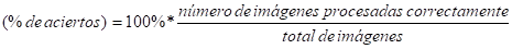 Aciertos: Se refiere al porcentaje de éxito que tiene el algoritmo que con éxito procesan las imágenes con endurecimiento de haz, si la identifica artefactos y corrige recortada correctamente se considera como éxito, lo contrario se denomina como fracaso. Para llevar un procesamiento de imagen con artefacto de endurecimiento de haz es necesario probar el éxito del algoritmo considerando que el 100% corresponde a las 155 bibliografías consultadas, donde se hizo diversas pruebas y los resultados se obtuvieron aplicando la siguiente fórmula: