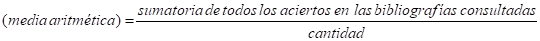 Valor medio: se aplicó la fórmula del valor promedio para determinar el valor medio de los resultados encontrados entre las diferentes bibliografías consultadas, aplicando la siguiente fórmula:
