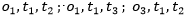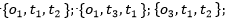 Los elementos de los conjuntos de resultados citados en los ejemplos de las matrículas de autos, y del equipo de trabajadores de la empresa que aparecen arriba tendrán forma de tuplas: [A,B,C,1,2,3,4]; [D,E,F,3,5,7,9]; [A,A,A,1,1,1,1]; [C,B,A,1,2,3,4]; …, y forma de conjuntos: