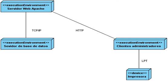 Entre los artefactos generados por la metodología RUP se encuentra el diagrama de clases del dominio (ver Figura 1) y el diagrama de despliegue (ver Figura 2) que se muestran a continuación: