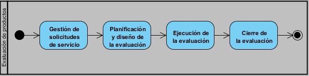 Elaborar la documentación: Debe elaborarse toda la documentación asociada a los procesos de gestión que posibilitan la ejecución y calidad de los ensayos, o puramente la realización técnica de estos, considerando las plantillas elaboradas en la fase anterior. Para desarrollar esta actividad la organización puede tomar como referentes procesos ya elaborados o definir los propios. Como parte de la investigación en la que se elabora el modelo del que es parte la presente estrategia, se definen los procesos adaptados a las características de las Factorías de Pruebas de Software. En la Figura 3 se muestran las etapas definidas para el proceso clave Evaluación de productos de software, en torno al cual se desarrollan las áreas de creación de valor mencionadas anteriormente. Para la especificación de las etapas del proceso, se tuvieron en cuenta los referentes principales en la literatura sobre las fases definidas para procesos de pruebas de software y las características de las Factorías (Hetzel, 1988) (Kit y Finzi, 1995) (Whittaker, 2000) (Kaner, Bach y Prettichord, 2001) (Black, 2002) (Pol, Teunissen y Van Veenendaal 2002) (ISTQB, 2005) (Pérez Lamancha, 2006). Este proceso tiene una relación directa con el proceso estratégico Prestación de servicio. Los documentos elaborados deben ser distribuidos a los usuarios potenciales, con el fin de comentar y evaluar su facilidad de aplicación. Posteriormente se presentan a la dirección de la organización para su aprobación.