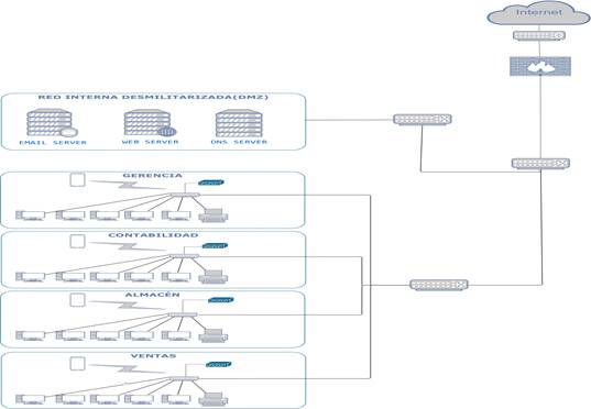La estructura de red propuesta para las Pymes, está basada de acuerdo a las capas de diseño de red LAN jerárquico. Las diferentes áreas de la empresa cuentan con la misma topología y estructura de red.