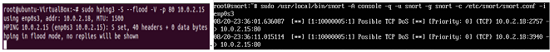 Antes de configurar las reglas, tenemos que ejecutar Snort en modo Sistema de Detección de Intrusos a nivel de red (NIDS) tal como se muestra en (Figura 4).
