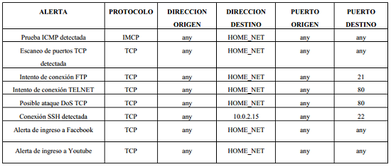 Se logró implementar reglas de filtrado en el motor de reglas de Snort, y se realizó el filtrado de eventos y vulnerabilidades, estas reglas alertan los posibles intentos de ataques como la denegación de servicios, ingresos a páginas no autorizadas, escaneo de puertos entre otros. Se logró verificar que dichas reglas implementadas cumplen con su propósito, puesto que se realizaron las pruebas necesarias para garantizar que la misma cuenta con la funcionalidad esperada.