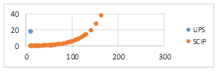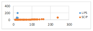 Las Figura 4 y Figura 5 muestran una comparación entre LiPS y SCIP, en cuanto a los tiempos (en segundos) que se demoraron en dar solución a los modelos.