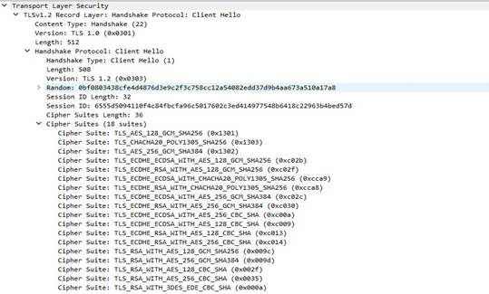 El monitoreo de los paquetes de red desde un cliente de la VPN evidenció que su conexión fue realizada mediante un túnel TLS cifrado, en correspondencia con la configuración realizada en el servidor OpenVPN. La Figura 4 muestra la captura de un paquete de red con la herramienta Wireshark durante el establecimiento de la conexión VPN.