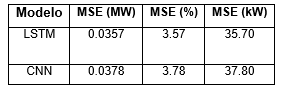 En la Tabla 1 se muestra el error cuadrático medio de la predicción al aplicar los modelos representados en las Figura 7 y Figura 9.