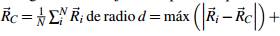 , siendo →Ri el vector de posición de cada átomo y di su radio iónico. Para la reconstrucción de la superficie exterior de la estructura es necesario comprender el concepto de función de distancia signada de un punto p en el espacio respecto a una esfera E con centro en la posición R→E y de radio dE , como: